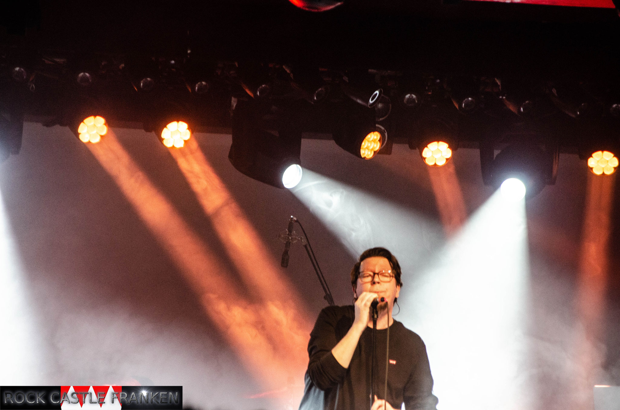 Der an Highlights nicht arme Auftritt wurde für Gazpacho nach kurzer Anlaufzeit („Fireworker“) zum Heimspiel und sie dankten es mit progressiven Großtaten wie „I’ve Been Walking (Part 2)“, „Clockwork“, „Hell Freezes Over I“ oder „Sapien“. Das Zusammenspiel des Sextetts ist über jeden Zweifel erhaben und die erzeugten Klangwelten, die natürlich auch einiges von (Neo)Prog Bands wie Marillion haben, wurden ebenfalls via Leinwand in visueller Stimmung begleitet. Allerdings wurden hier die stimmungsvollen Bilder irgendwie meiner Meinung nach zu hektisch aneinander gereiht, so daß sich das Gesehene nicht richtig entfalten konnte. Ausnahme hierbei die Zahnräder-Projektion bei „Tick Tock Part. 3“, die für konstante Stimmung sorgte.