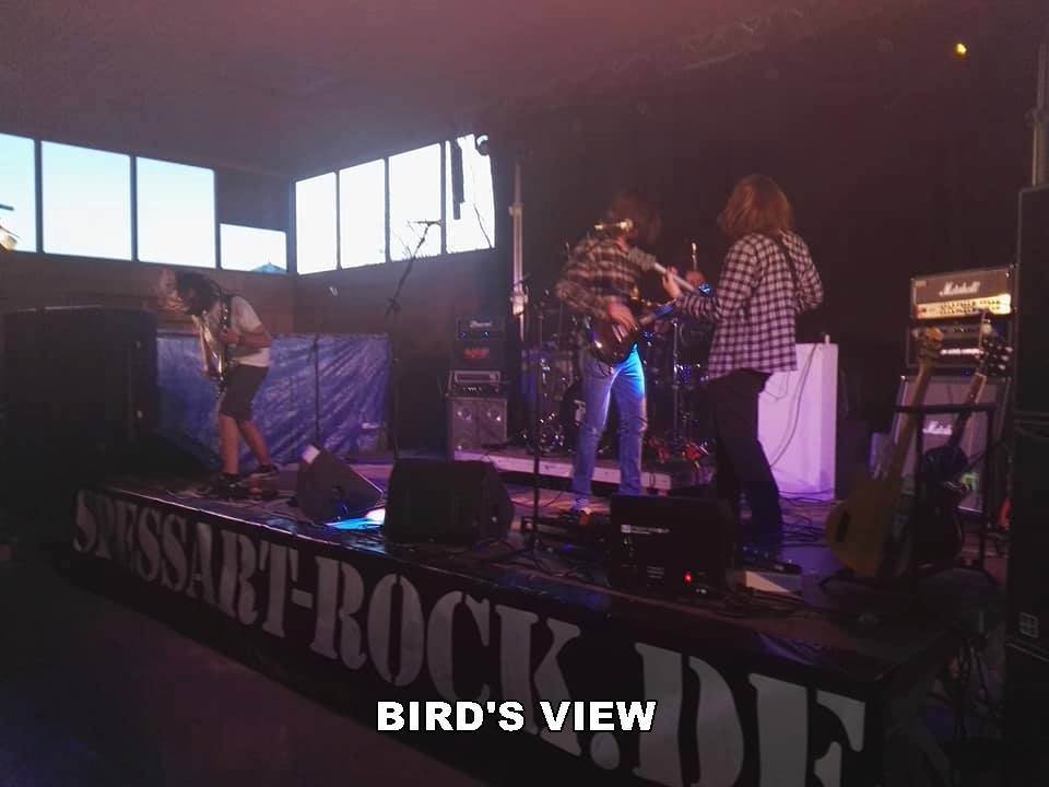 Für Events dieser Art ist es natürlich elementar wichtig, dass der vorgegebene Zeitrahmen, gerade was die Running Order angeht, strikt eingehalten wird. So stand bereits eine halbe Stunde nach Saalöffnung ab 20:00 Uhr der Opening Act BIRD'S VIEW auf der Bühne. Es liegt jedoch in der Natur der Sache, dass abends um Acht noch nicht wirklich viele Menschen auf der Piste sind. So konnten die Hessen ihr dreiviertelstündiges Set leider nur einem überschaubaren Publikum darbieten. Dieses kam jedoch in den Genuss erstklassigen Stoner Rocks, durchzogen mit doomigen Elementen und immer wieder überraschenden Breaks und Tempiwechseln. Technisch auf einem hohen Niveau und von der engagierten Technik Crew auch mit einwandfreiem Sound ausgestattet, begeisterte Bird's View auch anwesende Musiker, wie den Cervet Gitarristen Thomas Mayer, der sich seine Teilnahme am Spessart Rock auch anno 2018 nicht nehmen ließ. Aus der Vogelpersektive betrachtet, dürfen sich die jungen Rodgauer als einer der Gewinner des Abends feiern lassen.