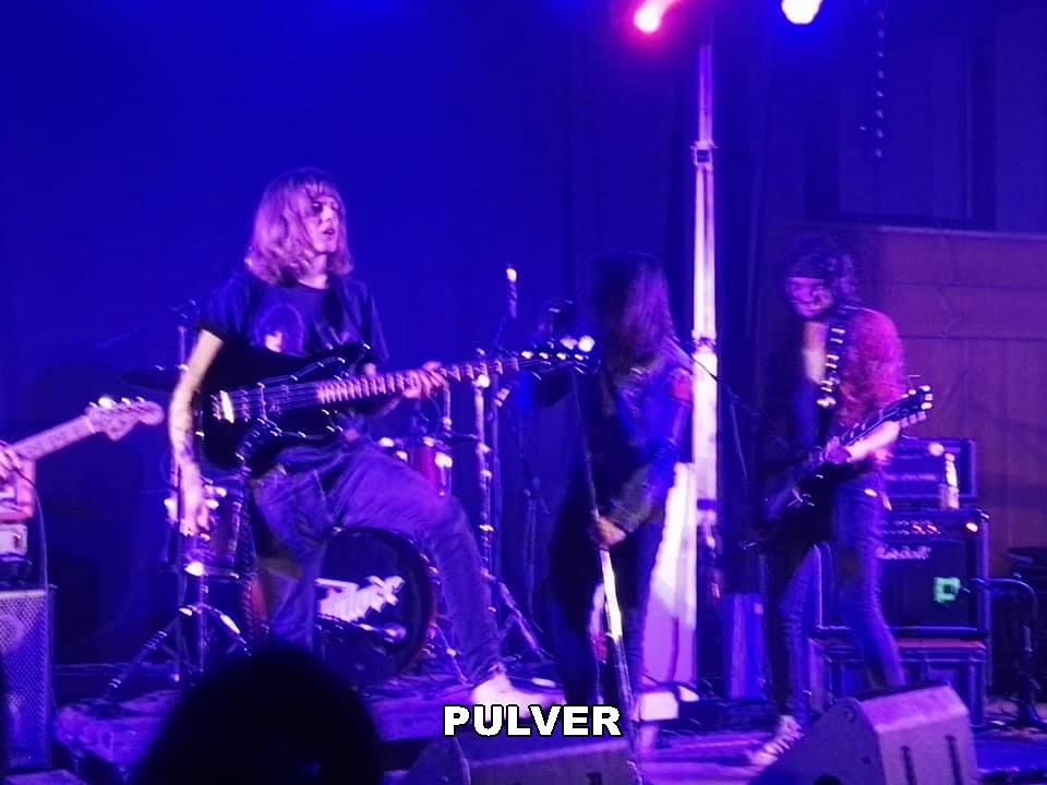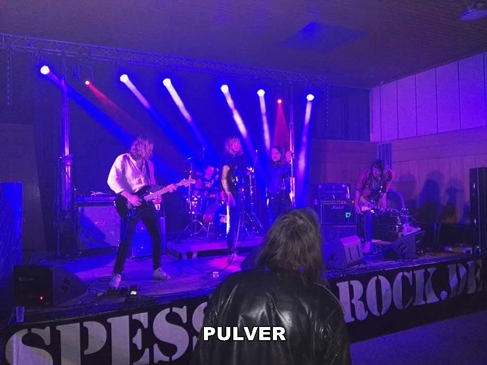 Nach einer kurzen Umbaupause war es ab 21:00 Uhr Zeit für die nächste Youngster Truppe: PULVER. Ich konnte ja auch im Small Talk mit den Musikern an jenem Abend nicht wirklich eruieren, ob der Bandname nun deutsch, also wie geschrieben Pulver, oder doch englisch, sprich: Palver, auszusprechen ist. Aber das ist natürlich nur eine Randnotiz. Denn das Hauptaugenmerk liegt selbstverständlich auf der Mucke. Und die überzeugte auf ganzer Linie. Schon etwas älteres Klientel wie der Rock Castle Franken Reporter vor Ort, schwebte einige Zentimeter über dem Hallenboden, denn was die Endzwanziger aus Aschaffenburg und Umgebung da zu Gehör brachten war guter, alter Heavy Metal klassischen Zuschnitts. Und die Jungs, die noch gar nicht geboren waren, als diese Musik en Vogue war, hatten ihre Hausaufgaben gemacht. Einflüsse der großen, alten Namen fanden sich in ihren Songs wieder. Klang ein Stück noch nach Iron Maiden, hatte das nächste durchaus Sabbath'sche Züge. Wurde das Gaspedal voll durchgedrückt, erinnerte das durchaus an Motörhead. Und auch Hard Rock typische Akkorde in bester Thin Lizzy Manier haben im einstündigen Set der erst 2016 gegründeten Band ihren Platz. Hats off, das war ein überzeugender Vortrag.